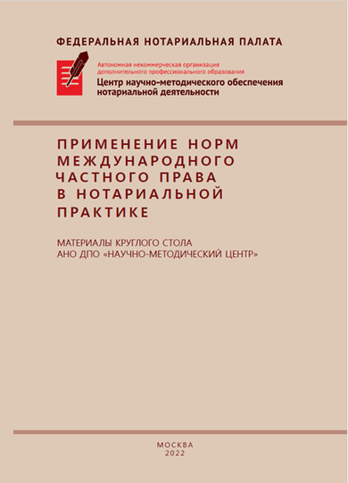 Применение норм международного частного права в нотариальной практике: сборник материалов круглого стола АНО ДПО «Научно-методический Центр», под ред. О. А. Терновой, А. А. Костина, 2022